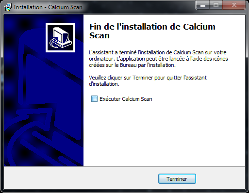 L’installation étant terminée, décochez la case « Exécuter Calcium Scan« . Enfin, pour finaliser, appuyez sur Terminer