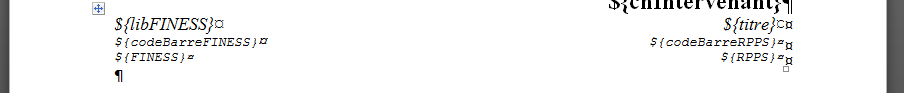 | ${codeBarreFINESS} | Code barre visuel, correspondant au numéro FINESS de l’intervenant, s’il en a un |