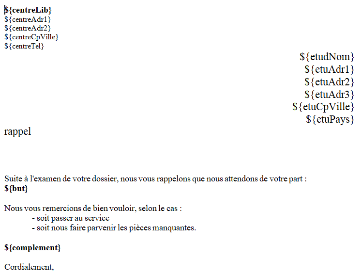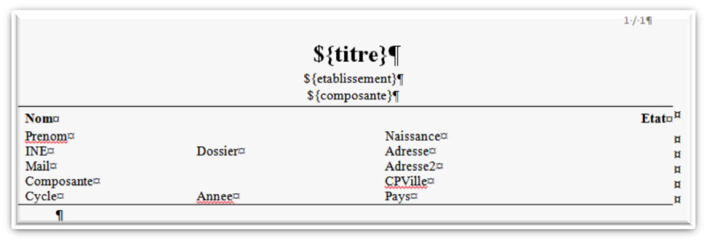 | ${adresse_etudiant_1}, ${etuAdr1} | Adresse (1ère ligne) de l’étudiant |