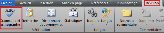- Aller dans l’onglet « Révision » > « Grammaire et orthographe«