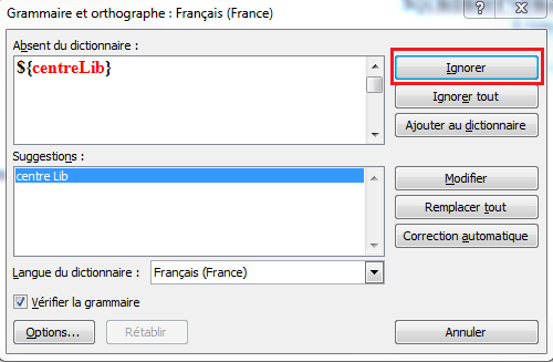 Certains caractères issus du mode révision de Word notamment peuvent être à même de faire dysfonctionner le template au sein de Calcium.