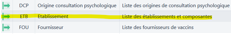 Dans la gestion des nomenclatures, il faut sélectionner celle concernant l’établissement :
