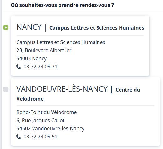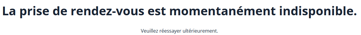 Si aucun rendez-vous n’est disponible, il ne sera pas possible de prendrez rendez-vous