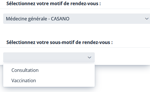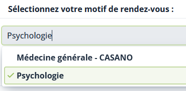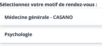 Il vous faut tout d’abord sélectionner votre motif de rendez-vous :