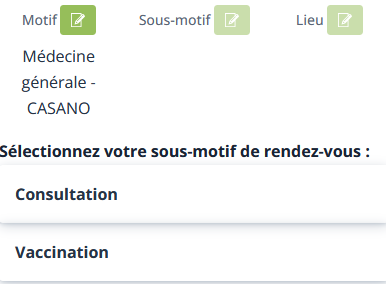 Si le motif sélectionné est parent de sous-motif, il vous faut sélectionner un sous-motif de rendez-vous :