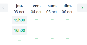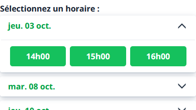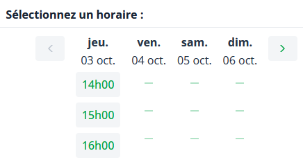 Vous pourrez ensuite modifier l’horaire en fonction de ceux disponibles, en cliquant sur celui que vous souhaitez :