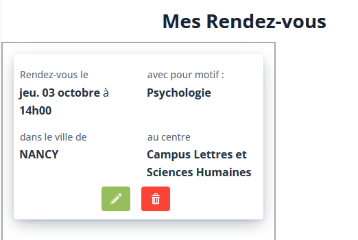 Pour modifier un rendez-vous, il vous suffit de cliquer sur le bouton « Modifier »