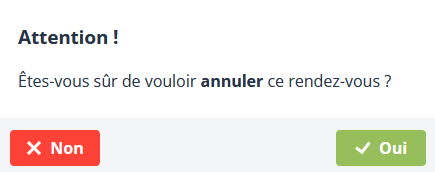 Une fois cliqué sur « Oui », votre rendez-vous sera annulé et un message de confirmation s’affichera.