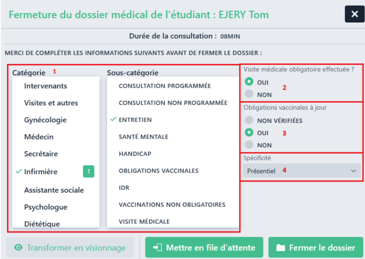 Si vous êtes en consultation directe ou différée, une fenêtre s’ouvre vous demandant de compléter les informations de cette consultation :