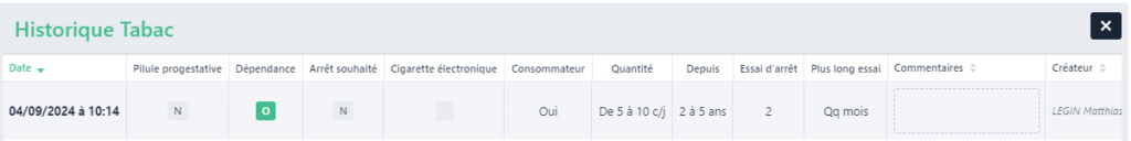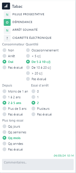 Le bloc Tabac permet de prendre en compte les habitudes concernant la consommation de tabac.