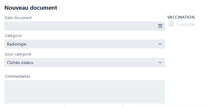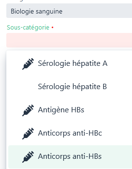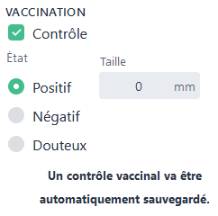 Il est possible de créer automatiquement un contrôle vaccinal (dans la fiche Vaccinations). Pour cela, il faut sélectionner une sous-catégorie ayant un lien avec un contrôle vaccinal. Elles sont reconnaissables grâce à l’icône