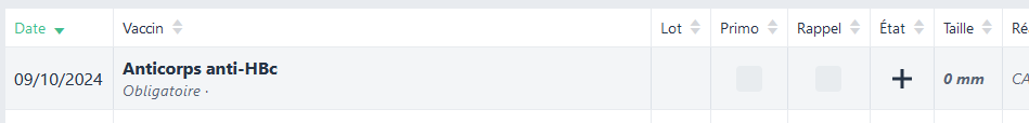 Et sur la fiche Vaccinations, se trouve un nouveau contrôle vaccinal, avec les informations renseignées :