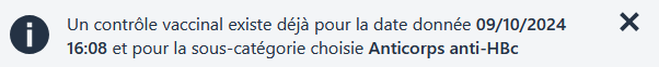 - Si un contrôle existe déjà pour la sous catégorie choisie et pour la date donnée, un message s’affiche et la création du contrôle ne se fera pas