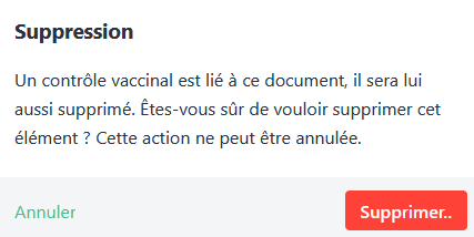 - Lorsque vous supprimez un document lié à un contrôle vaccinal, vous supprimerez le contrôle lié en même temps