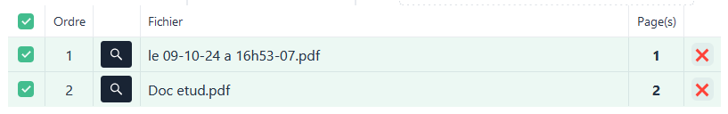 Lorsque vous déposer un fichier, celui-ci se retrouve dans votre panier virtuel. Si le fichier a pu être transformé en PDF ou l’est déjà, vous pouvez avoir un aperçu grâce au bouton
