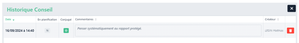 Il est possible de supprimer via l’icône ‘poubelle’ une saisie de données si celle ci a été enregistrée pendant la même journée.
