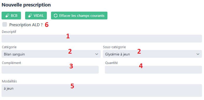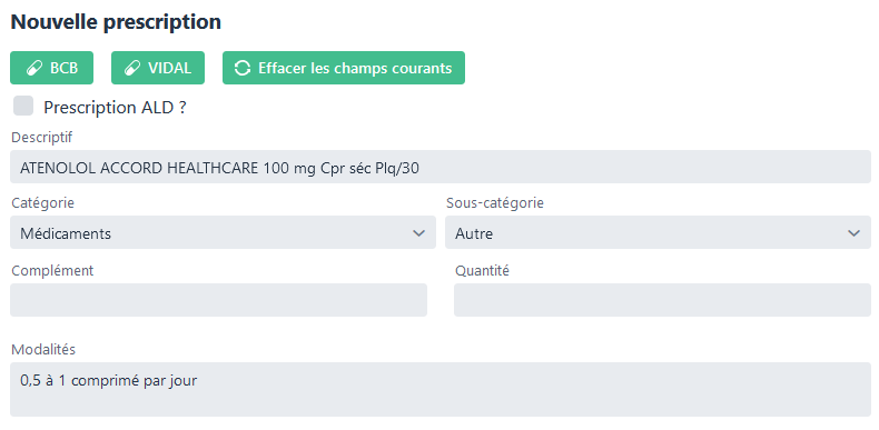 - Date : date de l’ordonnance (par défaut, celle du jour)