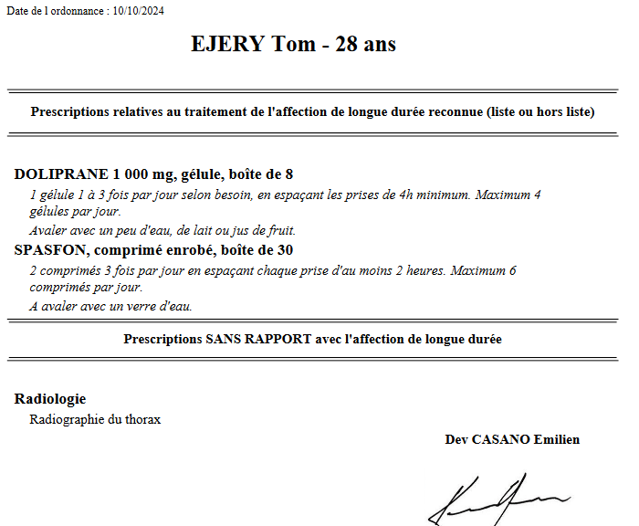 Vous pouvez renouveler ces opérations autant de fois que de prescriptions vous devez ajouter à votre ordonnance