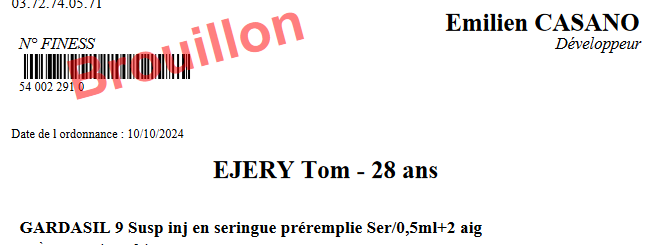 - Cadre : si vous sélectionnez un champ (Médecin traitant, Urgence, etc) celui ci apparaîtra sur l’ordonnance