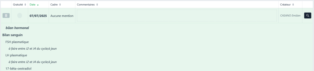 Cette action va créer une nouvelle ordonnance contenant les mêmes prescriptions. En cliquant dessus, l’intervenant est redirigé vers la fiche Ordonnance avec les prescriptions pré renseignées. Vous pourrez alors ajouter, modifier ou supprimer des prescriptions à la date du jour par exemple.