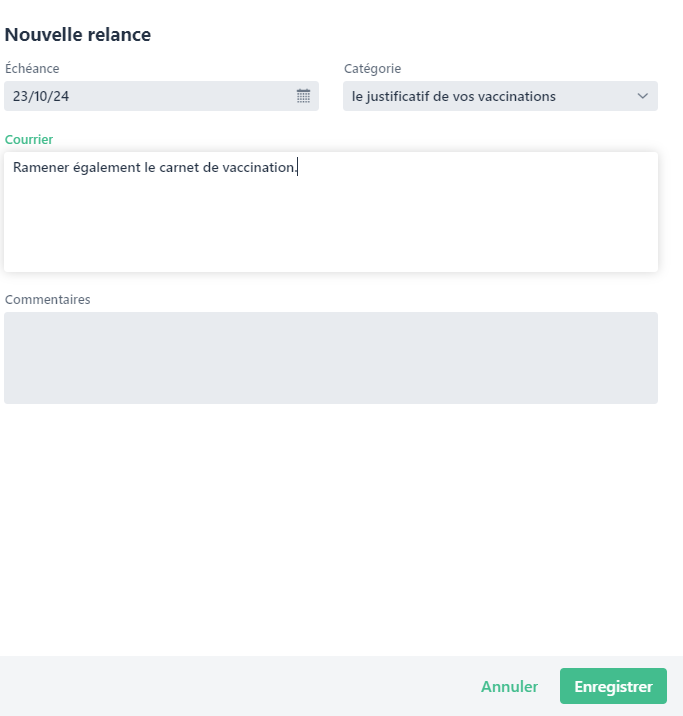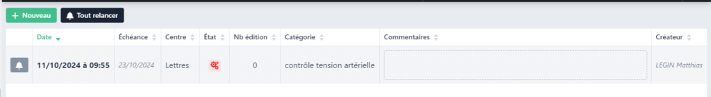 Saisie d’une nouvelle relance