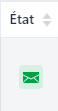 Lorsque le mail a été envoyé à l’étudiant, la colonne » Etat » du tableau change de statut et devient une petite enveloppe verte comme ci dessous.