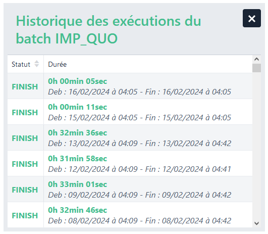 , une fenêtre s’ouvre contenant l’historique du batch concerné :