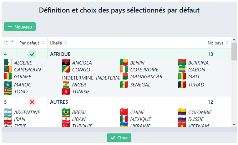 permet d’accéder à la gestion des liste de pays par défaut.