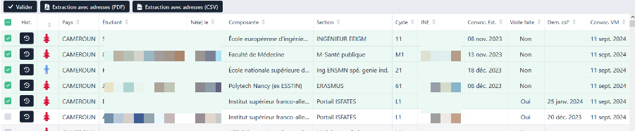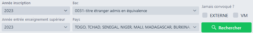 En plus de cela, vous pouvez filtrer les étudiants qui n’ont jamais été convoqués via convocations externes ou convocations sur la visite médicale.