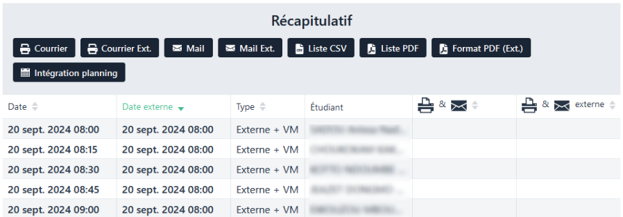 Cette fenêtre reprend les mêmes fonctionnalités que sur le récapitulatif des convocations.