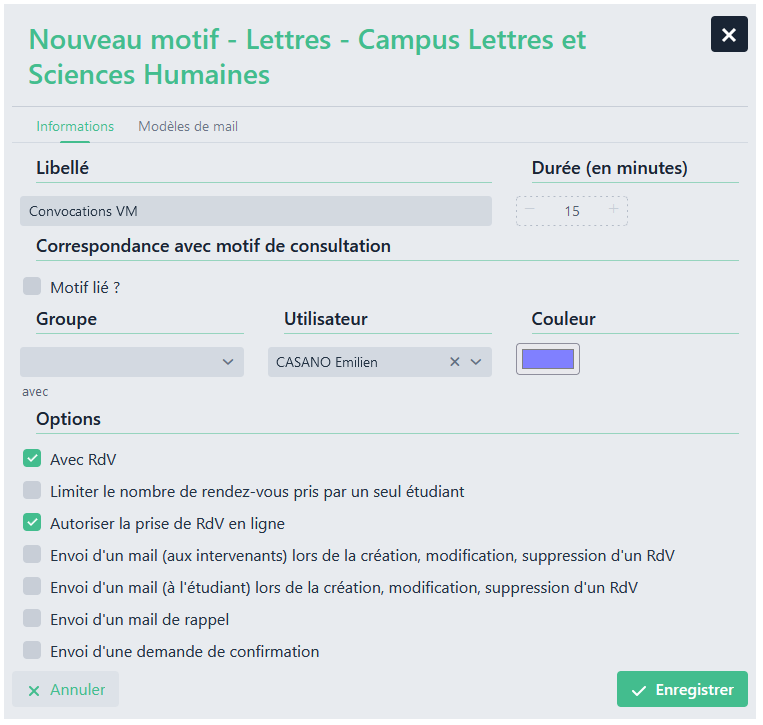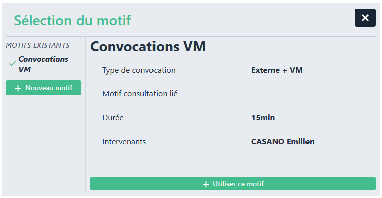 Afin d’intégrer les convocations sur votre planning, il faut définir le motif de créneau au préalable.