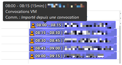 Une fois le motif créé, les créneaux et les rendez-vous sont automatiquement importés dans votre planning.