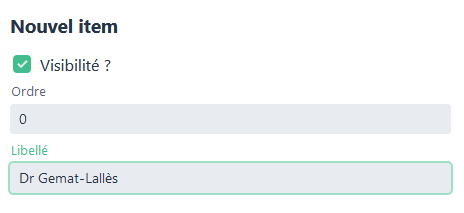 - Modifier les éléments (ordre, libellé ou la visibilité)