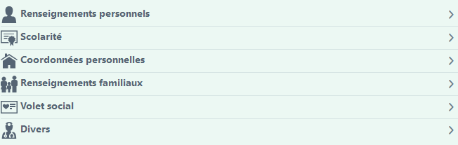 Chaque volet sont les mêmes que vous pouvez retrouver dans la fiche Identité.