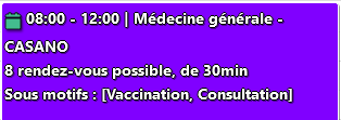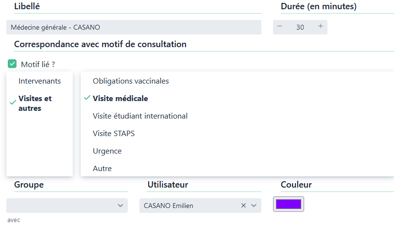 Un motif va comporter les informations qui permettront de créer et gérer les créneaux plus facilement, comme la durée d’un rendez-vous, le motif de consultation lié ou diverses options.