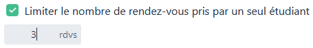 Cette option permet de limiter le nombre de rendez-vous qu’un étudiant peut prendre simultanément. Elle est là pour empêcher certains étudiants à abuser de la prise de rendez-vous.