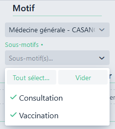 Afin de catégoriser certains motifs et mieux organiser le planning et les rendez-vous, un sous-motif peut être créé et lié à un motif parent.