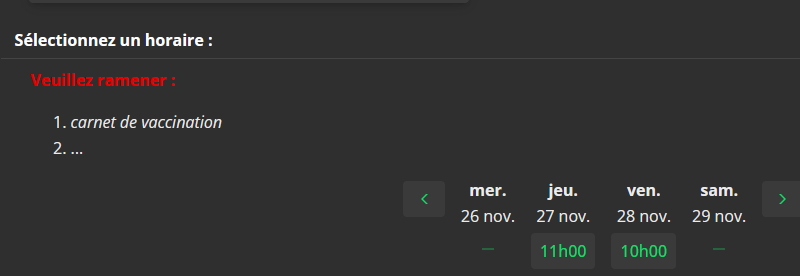 Instructions supplémentaire (Prise de Rendez-vous en Ligne)