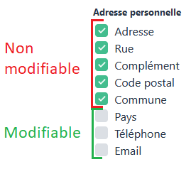 – le champ concerné est coché parmi la liste ci-dessous (hors Nom, Prénom, Date de naissance et Nationalité)
