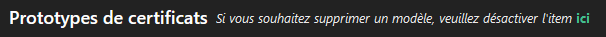 Afin d’accéder plus rapidement à l’item lié au modèle de certificat courant, il est possible d’aller directement sur la page de l’item certificat.