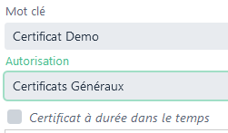 - Créer une nouvelle catégorie de certificat en [1] pour ensuite lui associer un nouveau certificat identifié par un mot clé