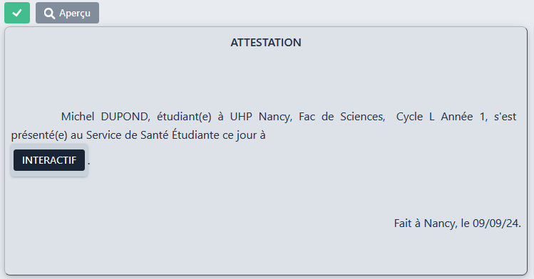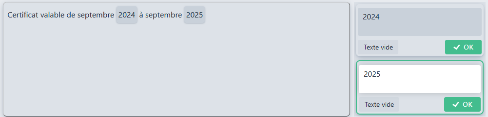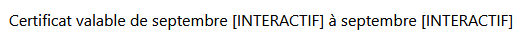La balise INTERACTIF permet de saisir un texte libre. Par exemple si on l’introduit dans notre certificat, on obtient :