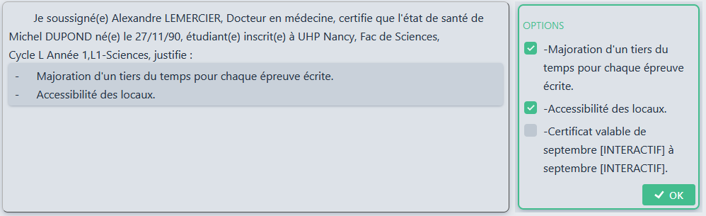 De plus, on peut définir un certificat avec une durée dans le temps, pour l’utilisation de certificat handicap pluriannuel.