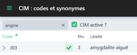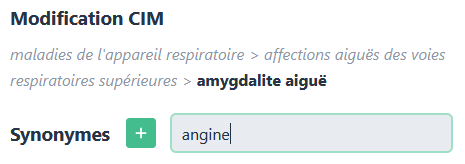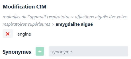 Après avoir sélectionné la CIM, il est possible d’ajouter un ou plusieurs synonymes via le champ texte puis d’appuyer sur le bouton