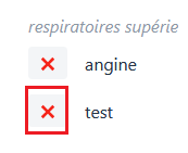 Après avoir sélectionné la CIM, il est possible de supprimer un synonyme en cliquant simplement sur la croix à côté du nom du synonyme.