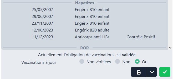 signifie qu’il n’y a au moins une vaccination dans le dossier de l’étudiant- En cliquant sur ce bouton, il est possible d’imprimer le carnet de vaccination, ainsi que de mettre à jour l’obligation vaccinale