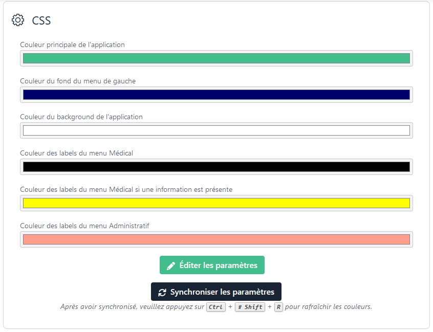 Défini la couleur des éléments du menu pour les fiches Médicales, quand une donnée est présente - Couleur des labels du menu Administratif