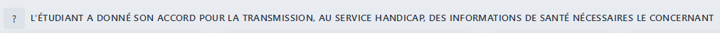 Cette option permet d’afficher ou non la case à cocher concernant l’accord donné par l’étudiant sur l’utilisation de ses informations, présent sur la fiche Handicap.