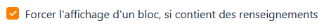 Cette option va forcer, ou non, l’affichage d’un bloc si celui-ci contient des renseignements. Celle-ci va de paire avec les options de visibilité de bloc ci-dessus.