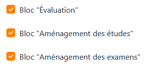 Cette option permet d’afficher, ou non, les différents blocs de la fiche Handicap. Il sera toujours possible pour un utilisateur de voir temporairement un bloc qui a été mis invisible, via la fiche Handicap.